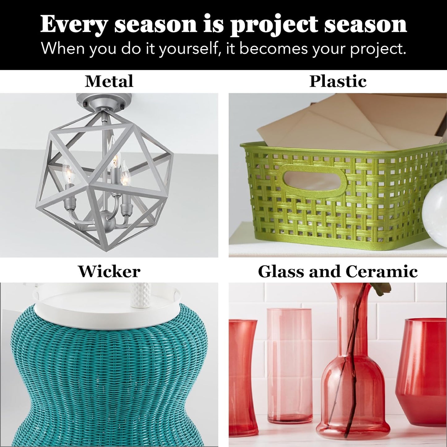 - Bonds heavy-duty materials like wood, metal, plastic, glass, laminate and more