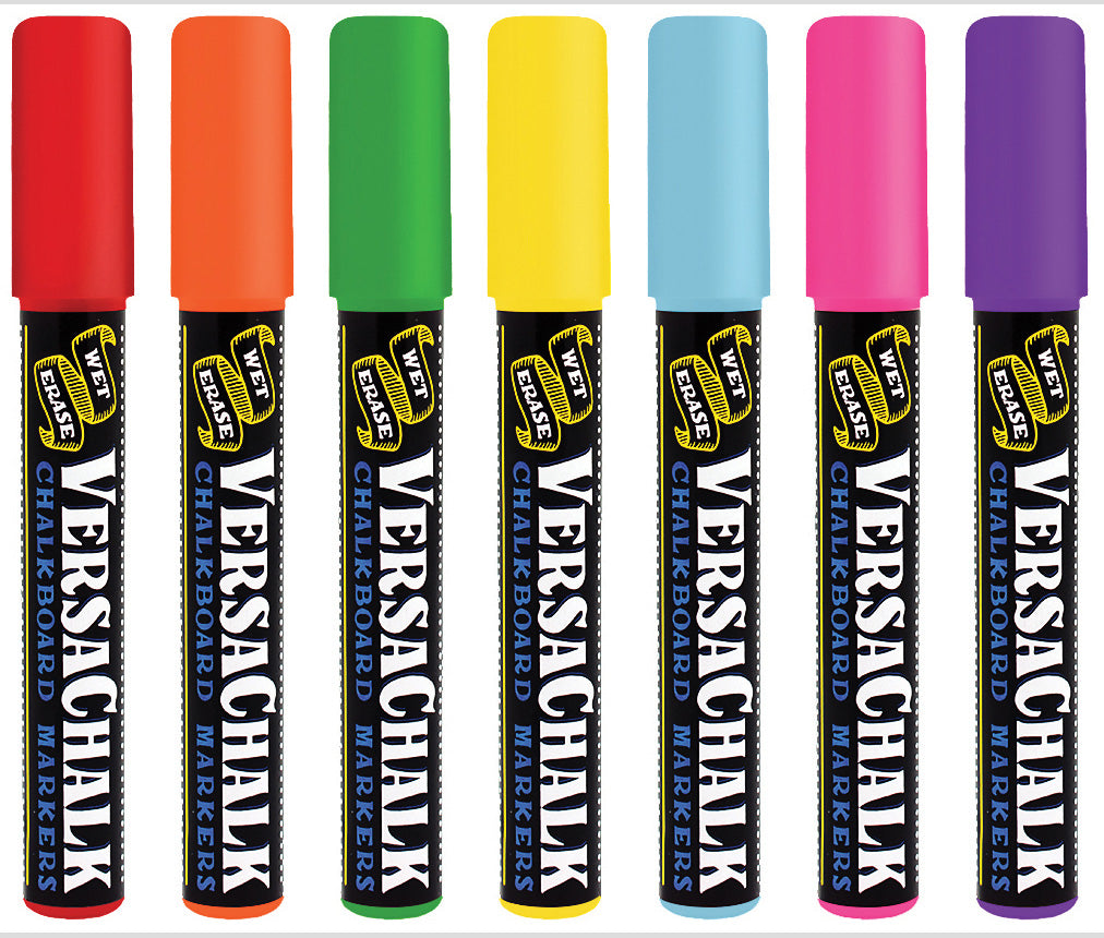 These chalk markers are designed to look bright and bold on dozens of surfaces including glass, plastic, metal, ceramic and of course chalkboards! At work, use the chalk markers to create eye-catching signs, colorful menu boards and dazzling window displays. At home, use them to decorate wine glasses at a party, write a reminder on the mirror, keep track of your grocery list on the refrigerator or get organized by using them to label storage containers. This 6x5.75x1 inch package contains eight liquid chalk markers in assorted colors. Conforms to ASTM D 4236. Imported.