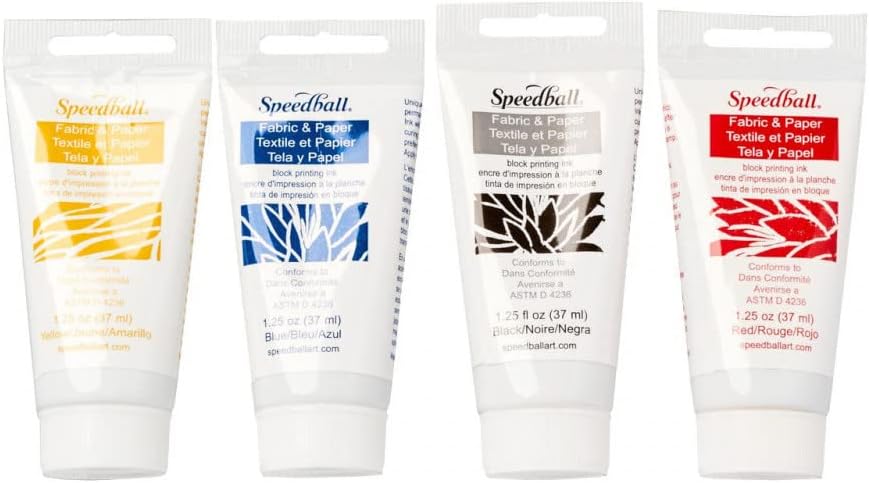 Woodcut ink specially developed for fabric, it has all the characteristics of the Speedball woodcut paint based water with the ability to be applied on a wide variety of fabrics. It is suggested a 24 hour drying time, after this period remains permanent during washing, no heating required. Heavily pigmented provides strong, opaque colors. Set of 04 1.3 oz Colors: Black, Red, Blue and Yellow.